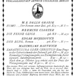 Wir geben hiermit bekannt, daß unter der handelsgerichtlich eingetragenen Firma (…) ein neuer Buch- und Musikverlag errichtet wurde, der sich vorwiegend in den Dienst der schönen Literatur stellt. Ihm wurde eine besondere Abteilung für den Vertrieb von Bühnenwerken an Bühnen angegliedert.